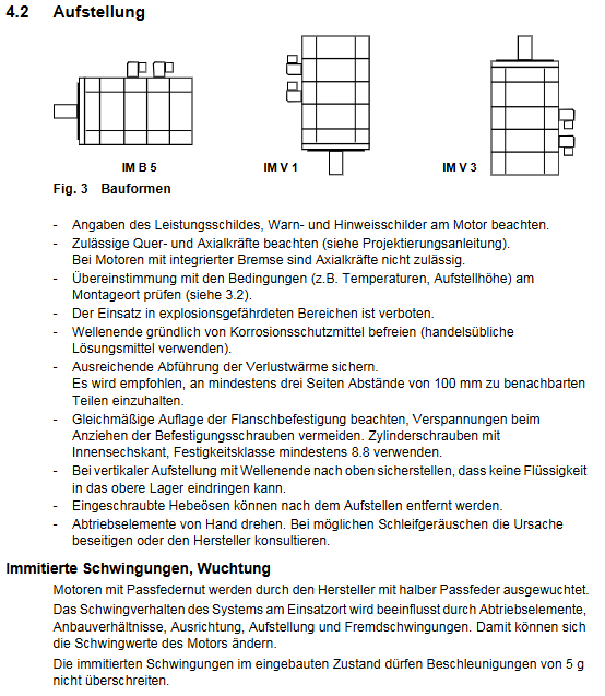 Installation form standard IM B5, optional IM V1, IM V3 EN 60034-7
