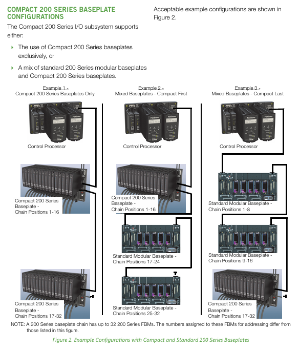 Volume optimization: 1 compact base plate+16 compact FBMs occupying approximately 2 standard 200 Series base plates+16 standard FBMs;