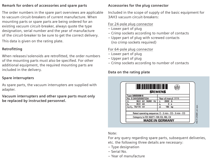 Replacement of vacuum arc extinguishing chamber 3AY17 15-2J 3AH3228-2/6/7 model