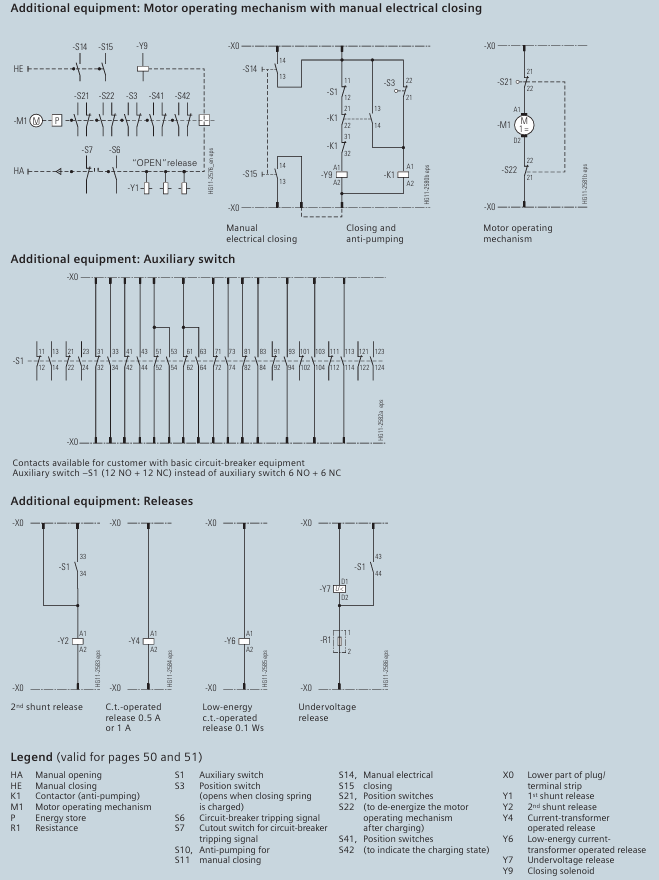 9-16 position secondary equipment operating mechanism, release, operating voltage, auxiliary equipment, etc