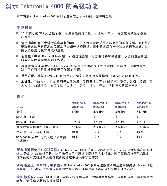 DPO4104 & MSO4104 1 GHz 4 / 4+16 5 GS/s 10 M 10 K