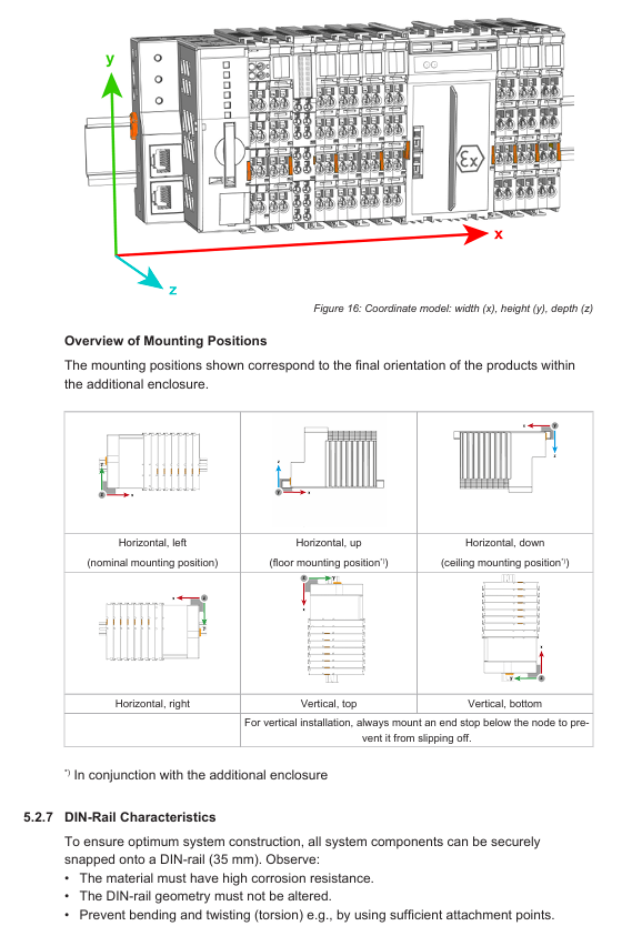 The Ex i power supply module needs to be connected in series in front of the Ex i module area, and four distance modules (750-616) need to be connected behind the area; If the subsequent module is the bus extension end module (750-627), only one distance module is required; If it is a regular end module (750-600), no distance module is required.