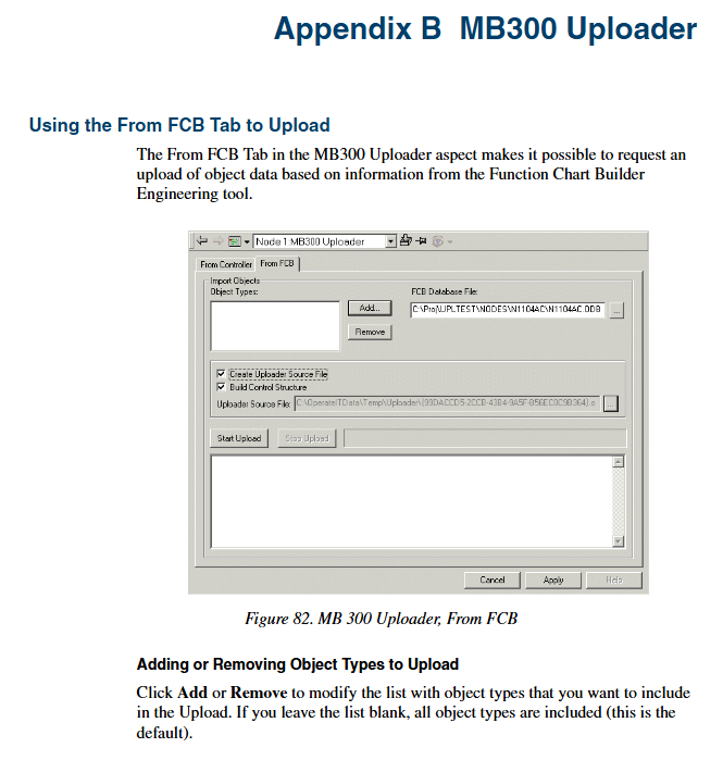 Offline setup: 1. Use FCB tool to create and upload source files (. OCD); 2. Copy the file to the 800xA server; 3. Upload through the "From FCB" tag of MB300 Uploader; 4. After the controller is connected to the network, add the physical address of the controller that is not installed or connected to the network through the "From Controller" tag