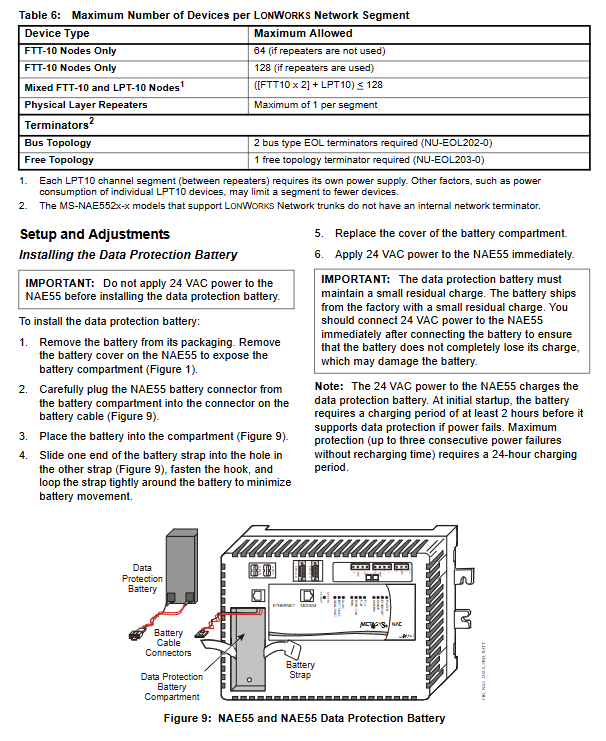 MS-NAE5520-1 supports 1 LONWorks bus and 2 N2/MS/TP buses