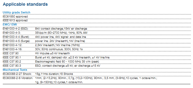 |Industry certification | IEC61850 approval, IEEE1613 approval|