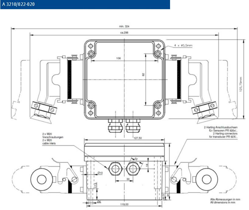 Model A3210/022-000: Key dimensions (unit: mm) include 127.5, 127.50, 60, 119.00, etc., equipped with 4 mounting holes with a diameter of 6mm (specific details need to refer to the drawing annotations)