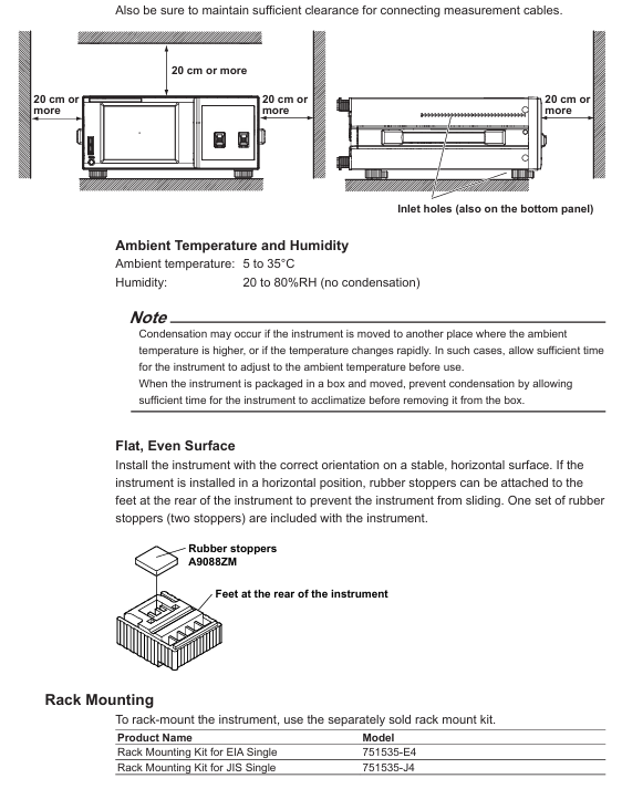 Rack installation: A separate rack kit (such as EIA standard 751535-E4, JIS standard 751535-J4) needs to be purchased, and the bottom should be supported and not obstruct the ventilation holes during installation