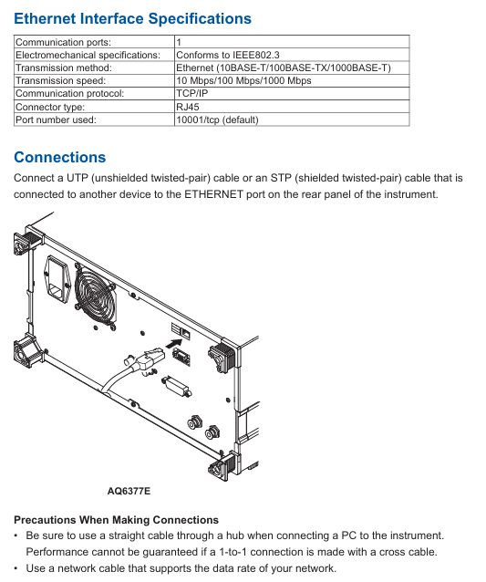 Focus on the remote control function of AQ6377E, provide detailed instructions on the configuration methods of GP-IB interface and Ethernet interface, as well as the use of communication instructions, and support the setting of measurement parameters, data acquisition, and automated analysis of equipment through external controllers (such as PCs).