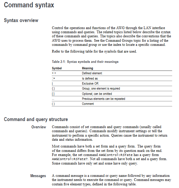 Abbreviation rule: Commands can be abbreviated, with the capitalized part being the abbreviation core (such as TRIGger: LEVel → TRIG: LEV);