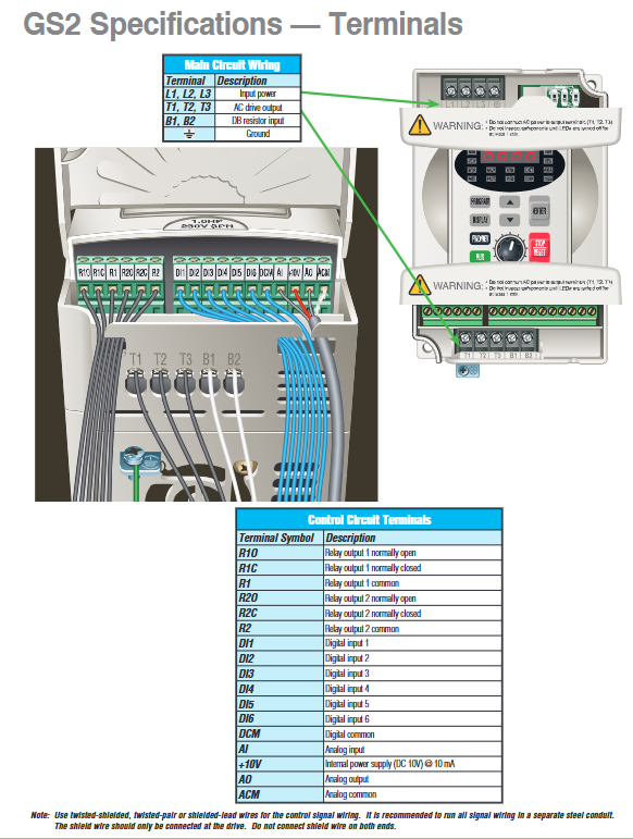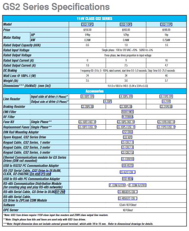 For GS2-1xxx models: 115V level reactors are required on the input side, and 230V level reactors are required on the output side (this special configuration requires special attention).