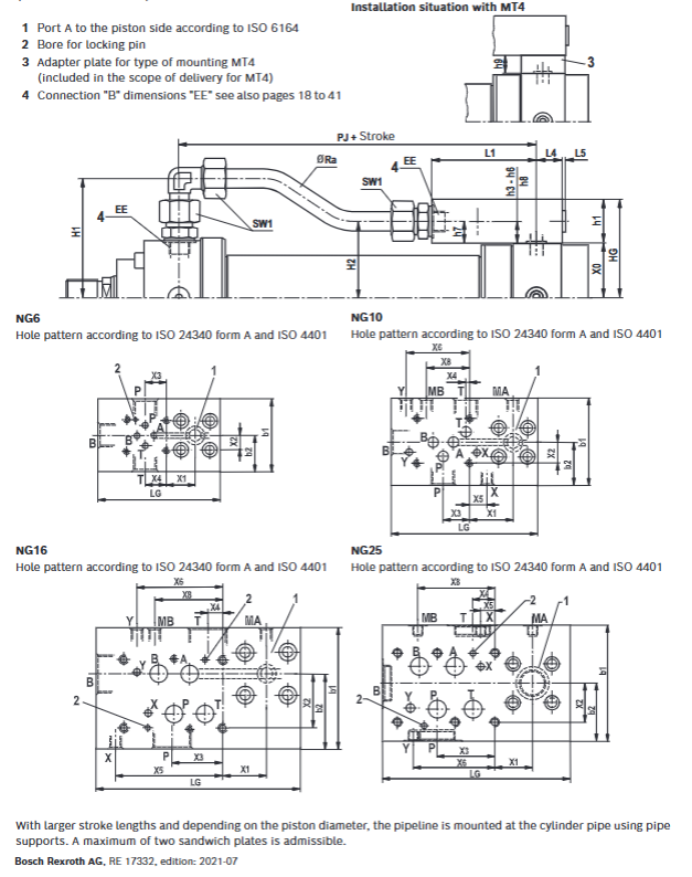 Port selection: Determine the interface position (1 to 4) and interface type (such as ISO pipe thread "M" or flange connection).
