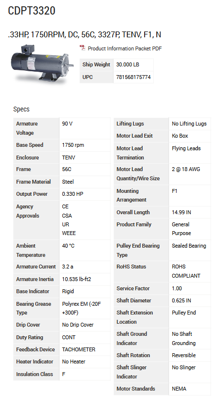 Comparison dimension Baldor Reliance brushed DC motor ordinary AC motor