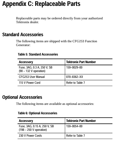 CFG 253 User Manual 070-8362-XX Equipment Operation and Maintenance Guide