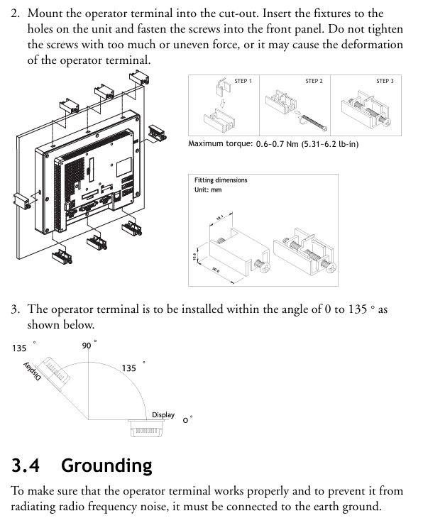 Equipment embedding: Insert CP450 into the opening and fix it to the front panel with the built-in fasteners (screws) of the equipment, with a torque controlled at 0.6~0.7 Nm (5.31~6.2 lb in), to avoid uneven force that may cause deformation of the equipment;