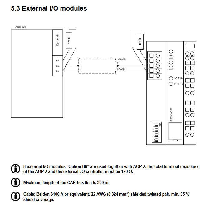 External I/O module: needs to be used in conjunction with AOP-2 panel, with a total terminal resistance of 120 Ω;