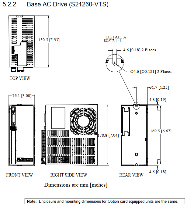 Regenerative resistor 36 Ω/25 Ω/15 Ω absorbs regenerative energy to avoid bus overvoltage
