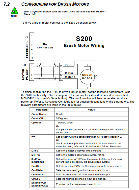 Torque/current mode: supports analog/PWM/software commands, requires setting KIP, I2TF0 (thermal time constant), I2TTrip (thermal protection threshold)