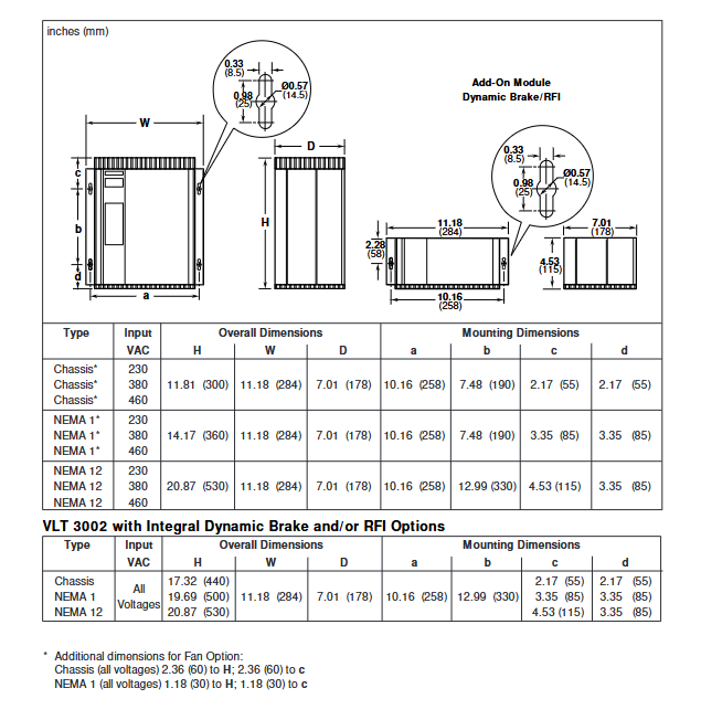 Model 3002-3022: Natural convection cooling, requiring a minimum upper and lower heat dissipation space (3.9 inches for IP00/IP21 and 5.9 inches for IP54).