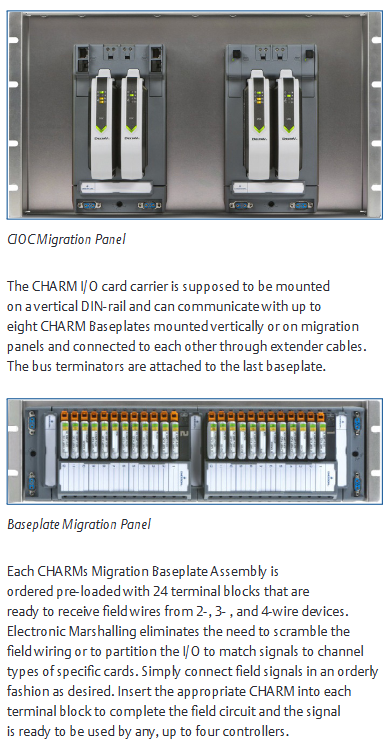 Component compatibility: All CHARM types, IS/non IS I/O terminal blocks, and key control columns are compatible with the migration panel; CIOC2 can directly replace CIOC, and the fiber optic Ethernet I/O ports cannot be cascaded.