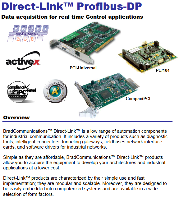 DRL-DPM-PCU Direct-Link ™ PCI-DPIO: PROFIBUS-DP master/slave (12 Mbps), PCI Universal bus, 3.3V/5V