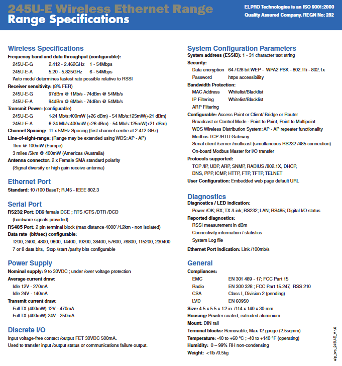The ELPRO 245U-E series is the core product of the ELPRO Industrial Wireless Ethernet product series, which focuses on reliable and secure wireless communication solutions in industrial scenarios. It belongs to COOPER Crouse Hinds, a subsidiary of MTL Instruments Group.