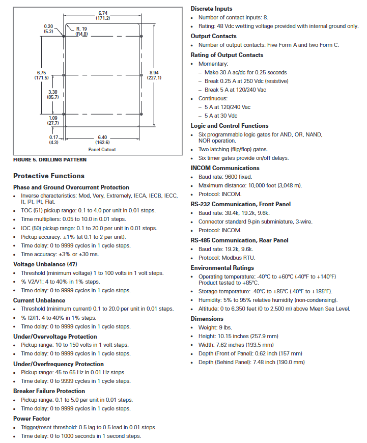 Product attributes: FP-4000 is a microprocessor based medium voltage feeder protection relay launched by Eaton's Cutler Hammer series. It adopts a fixed housing design and integrates protection, monitoring, control, metering, and data recording functions, aiming to simplify industrial distribution system design, reduce panel space, wiring costs, and equipment inventory.