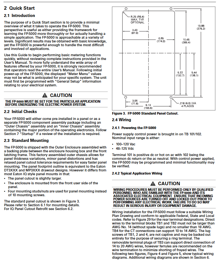 Measurement of input current: 4-channel CT input (5A for FP5000-00 and 1A for FP5100-00), maximum steady-state 2Inom, instantaneous 80-100Inom (1 second); Voltage: 4-channel VT input (0-120VAC line to ground, 0-144VAC overload)
