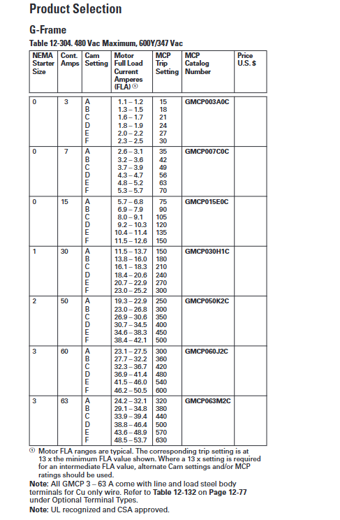 Product Type Continuous Ampere Rating (Partial) Magnetic Release Range/Starter Size (Example) Terminal Suffix and Meaning