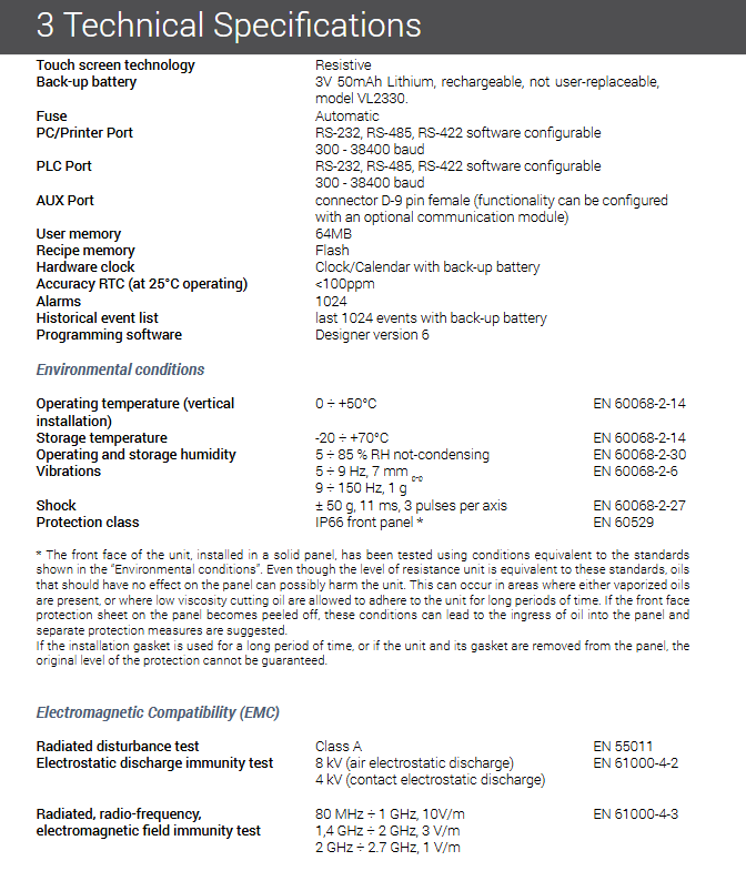 Electromagnetic compatibility: compliant with the 2014/30/EU EMC directive, compatible with EN 61000-6-4/6-2, EN 55011 Class A and other standards;