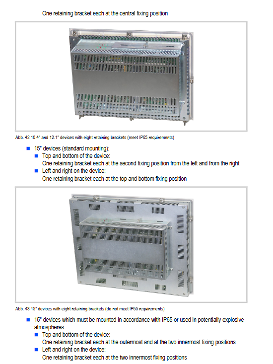 Standard front panel: using 6-12 fixed brackets and threaded pins (maximum tightening torque 0.2Nm), additional brackets are required for IP65 protection