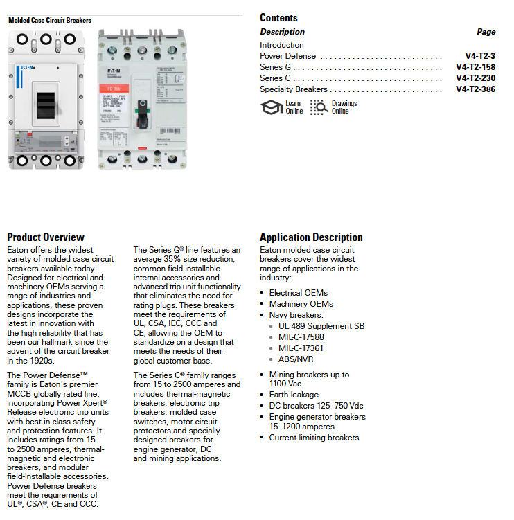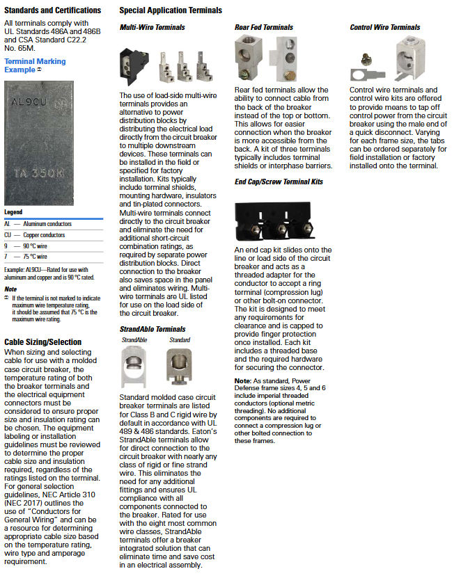 Current range 15A (PD-1) -2500A (PD-6), MCP specific 3A-600A