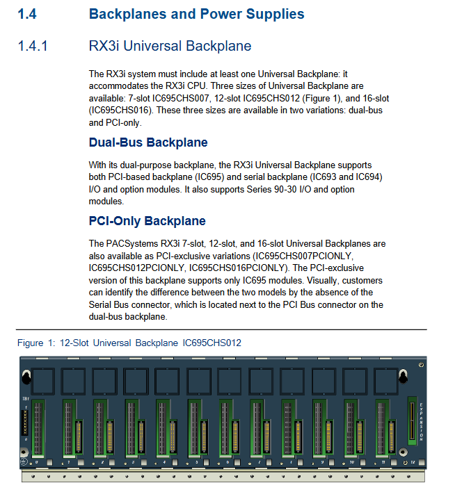 Universal backplane IC695CHS007/012/016 7/12/16 supports PCI+serial dual bus, some support expansion slots (12/16 slot models) IC695 series power supply