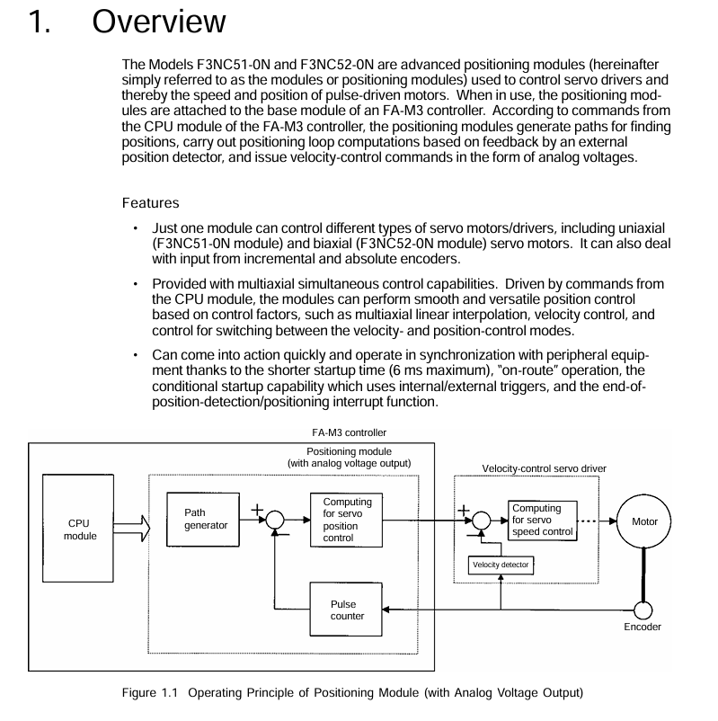 Applicable products: FA-M3 series unlimited range multi controller, specific models F3NC51-0N (single axis positioning module) and F3NC52-0N (dual axis positioning module), with the function of positioning control with analog voltage output.