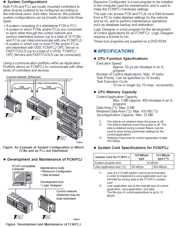 Logic Designer develops FCN/FCJ control applications (organized in task form), supports IEC 61131-3 standard programming language, requires separate license purchase, runs on PC/AT compatible machines