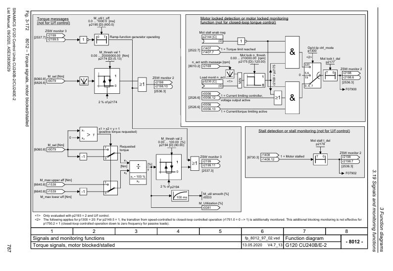 Protection configuration: p2100=1.8 (overcurrent threshold) → p2260=150% (torque limit) → p2175=1.2 (overvoltage threshold);