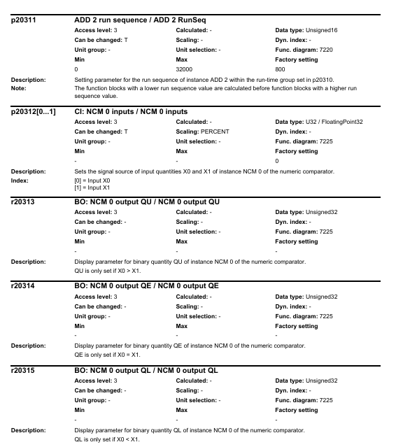 P0010 Debugging parameter filter filters visible parameters at different debugging stages 0-95 1 0=ready, 1=fast debugging, 3=motor debugging, 15=dataset configuration, 30=parameter reset, 95=safety integration debugging