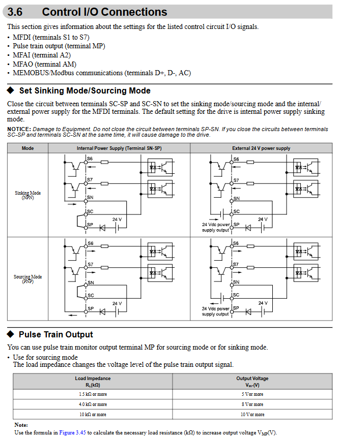 Functional safety: Safe Disable input (H1/H2/HC) requires Source mode, with a wiring length of ≤ 30m