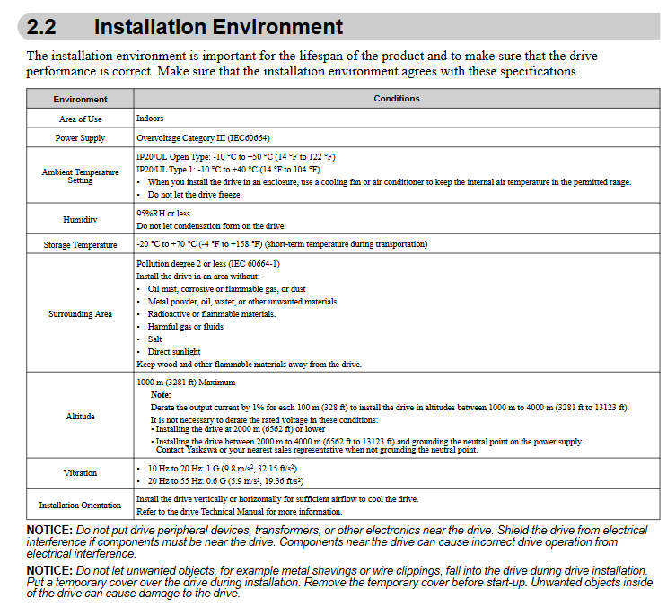 Environmental conditions: Indoor use, pollution level 2, altitude ≤ 1000m (with a 1% reduction in capacity for every 100m exceeding 1000m), vibration ≤ 1G (10-20Hz)/0.6G (20-55Hz)