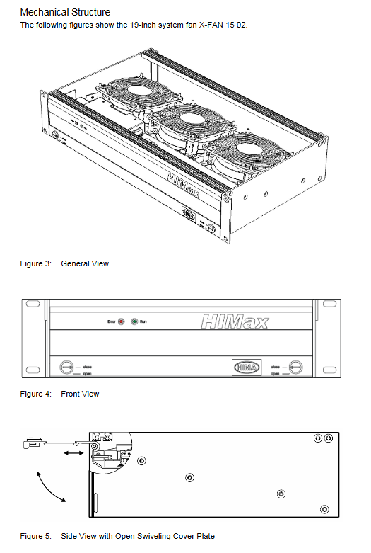 X-FAN 15 04 19 inch rack 3 X-BASE PLATE 15 02 conventional (240~375m ³/h) low (≈ 47dB (A)) temperature<40 ℃, noise sensitive scene