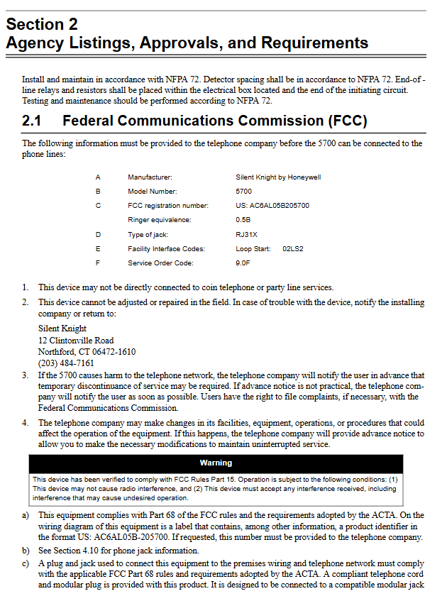 Communication interface telephone line: 2 channels (RJ31X, FCC certified); SLC circuit: Class A/B (22AWG maximum 1200 feet); SBUS: 4-core shielded wire (up to 6000 feet)