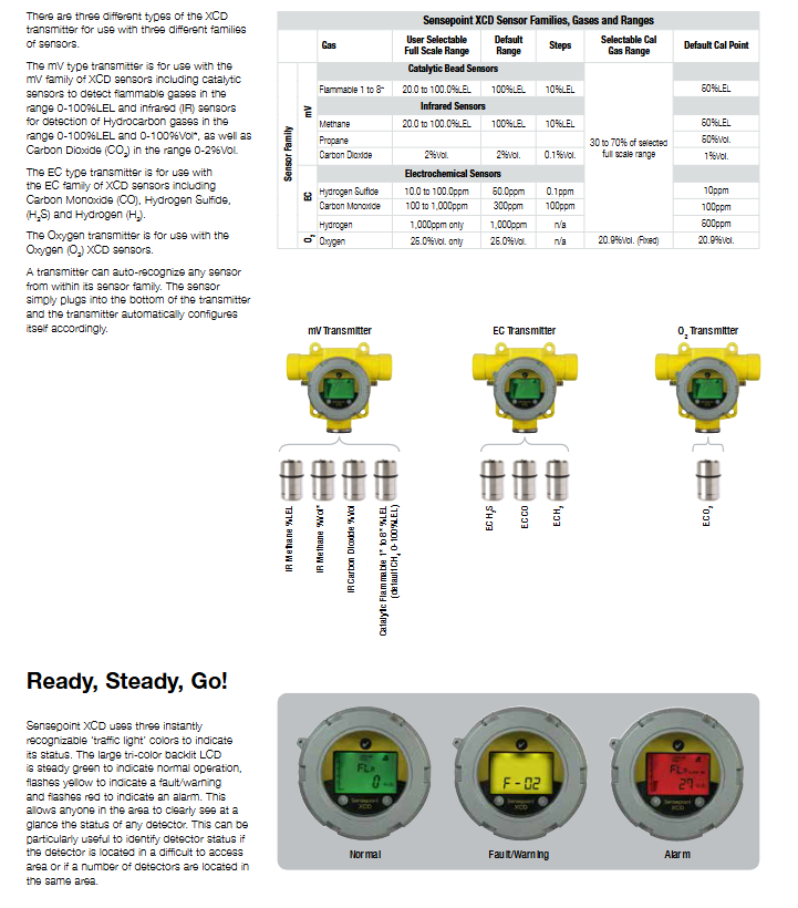 |Combustible gas | Catalytic combustion | 20.0-100.0% LEL | 100% LEL | 25-75% FSD | 50% LEL|