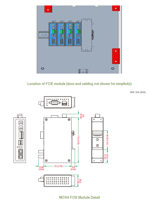 Star topology: Up to 16 FOE units can be connected in parallel to C300, with a maximum single-mode distance of 10km