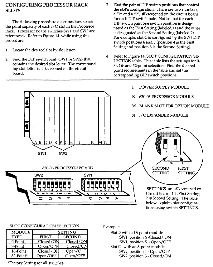 Core configuration: 2K memory, including 768 bit output status table (0-191 actual I/O, 192-767 control relay), 256 16 bit registers (4096-4351)
