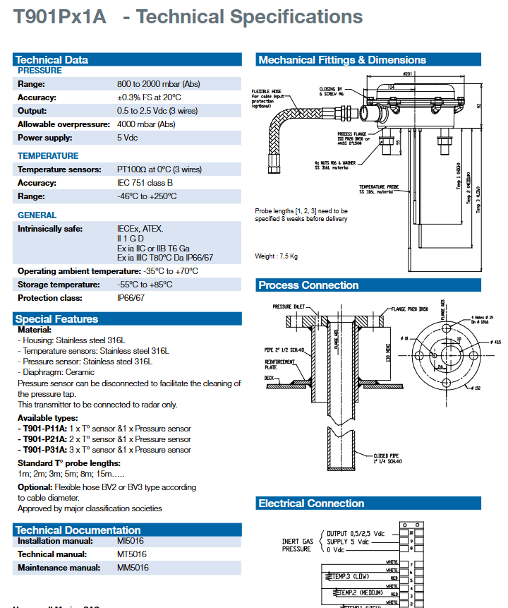 T901-Px1A adopts standard process connection interface, which is convenient for docking with valves or pipeline systems of various liquid cargo tanks. It has excellent sealing performance and can withstand high pressure and severe vibration environments.