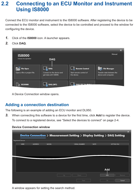 |1 | Start the IS8000 software, click on "DAQ" to enter the device connection window|