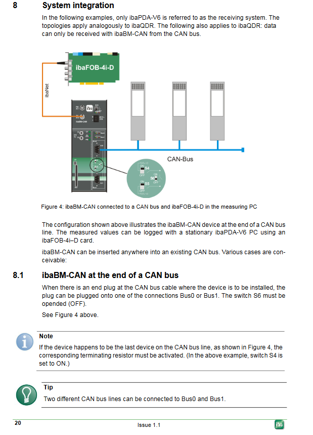 Special accessories: at least 1 ibaFOB-D series fiber input card, 1 ibaNet fiber jumper, CAN bus network;