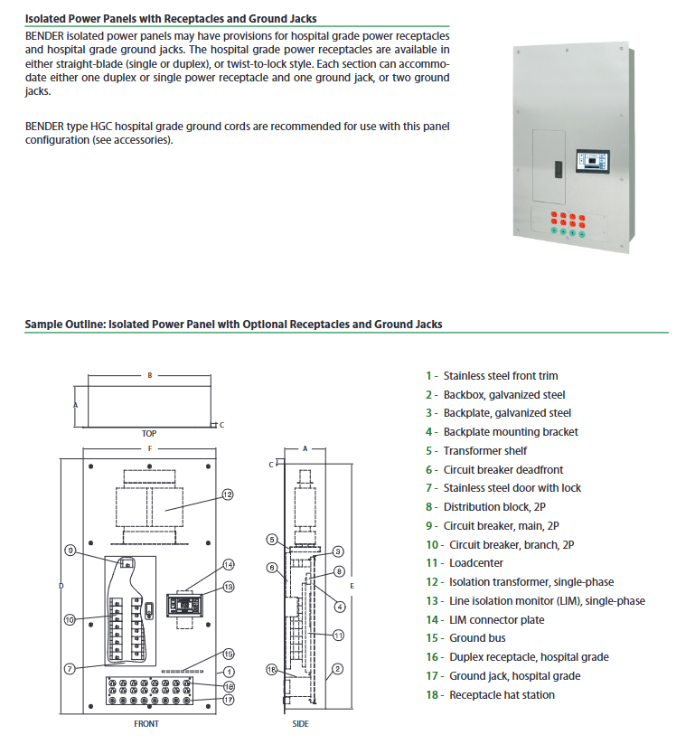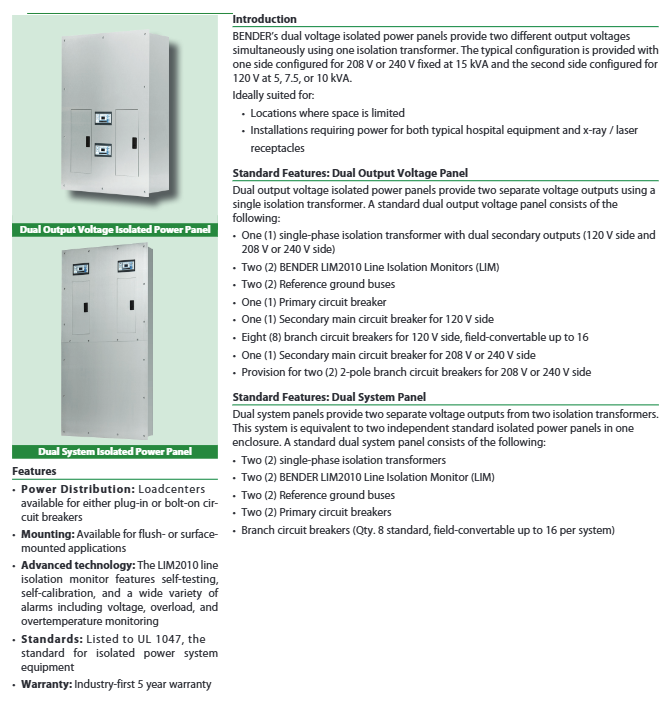 Standard Type (IP) Single Isolation System 3kVA~25kVA Single Voltage (120V/208V/240V, etc.) 1 LIM2010, 8-way Branch Circuit Breaker (expandable 16 ways) General Intensive Care Unit, Diagnosis and Treatment Room