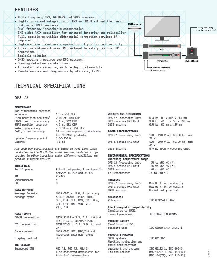 Product ownership: Belonging to the Kongsberg DPS i series, it is a sensor fusion GNSS solution that integrates decades of GNSS and inertial technology, designed specifically for ship dynamic positioning (DP) applications.