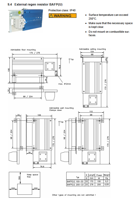 Installation requirements: Vertical installation, reserved heat dissipation space, surface temperature can exceed 250 ° C, away from flammable materials