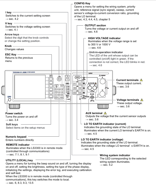 Key parameters: frequency 40-1200Hz, phase -180 ° to+359.999 °, power factor -1.0 to 1.0 (lead/lag can be set); When the voltage is ≥ 150V, a buzzing warning will be issued, and when the range is ≥ 300V, the "high voltage indicator light" will light up.
